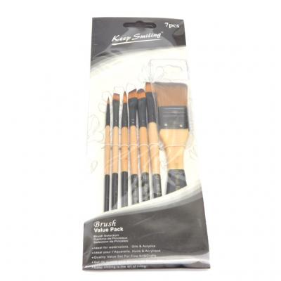 Комплект кръгли и плоски четки за рисуване - 7 бр. Синтетичен косъм. Дължина 18 см.