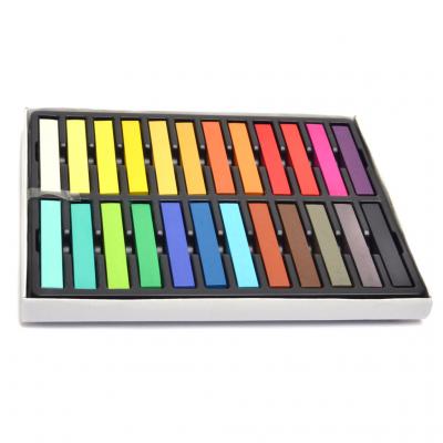 Комплект от 24 броя сухи пастели с наситени цветове. Нанасят се леко и могат да се използват смесени техники. Съхраняват се в картонена кутия с размери: 19х16 см.