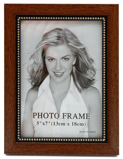 Красива фоторамка за снимки. Изработена от фронт стъкло, PVC материал, създаващ впечатление за дърво и гръб с поставка. Рамката е декорирана със златисти орнаменти. Подходяща за снимка с размер - 13х18см.