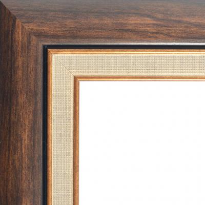Профил за рамка с паспарту със златисти кантове. Профилът е с лек релеф, създаващ впечатление за дърво - светло кафяво.
