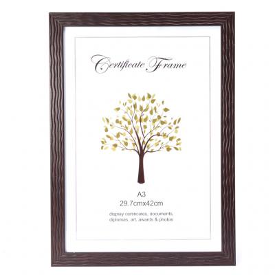 Рамка за снимка с релефни линии. Изработена от PVC материал с фронт стъкло и кукички за окачване в хоризонтално и вертикално положение на стената. Подходяща за снимки, грамоти, сертификати и други документи с формат А3 (размери: 29.7х42 см). Предлагат се различни цветове.
