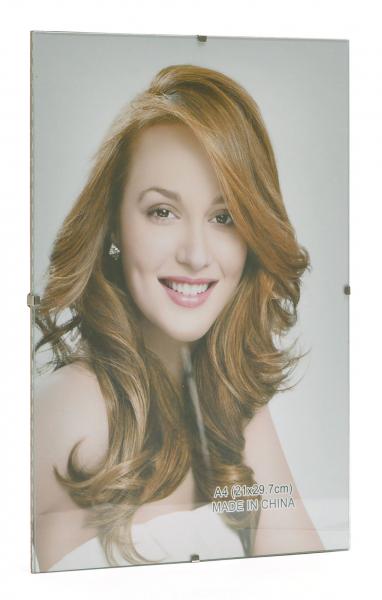 Рамка за снимка с четири метални клипс държача. Рамката е подходяща и за вертикални и за хоризонтални снимки, с фронт стъкло, гръб и кукички за закачване на стена. Подходяща за снимки с размер А4: 21х29.7 см.