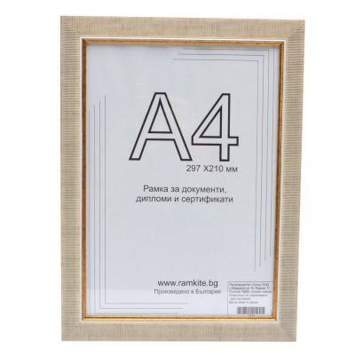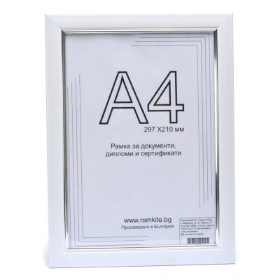 Рамка за снимки, сертификати, грамоти или други документи с А4 формат (21х29.7см). Може да бъде поставена на стената хоризонтално или вертикално с помощта на кукичка. Рамката е изработена от PVC материал с фронт стъкло. Предлага се в 3 цвята.