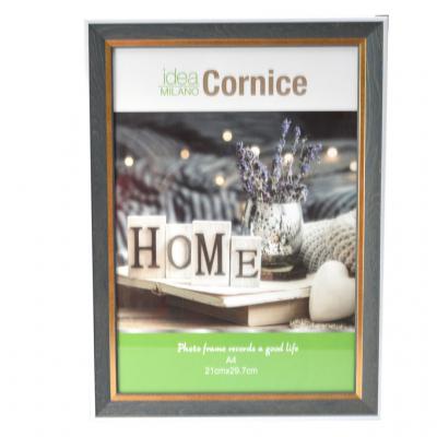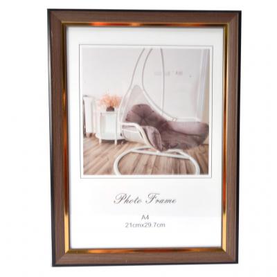 Рамка за снимки със златист вътрешен, подходяща за вертикално или хоризонтално поставяне на стена. Рамката е с фронт стъкло и кукичка за окачване на гърба. Предлагат се в 3 цвята. Подходяща за снимки, грамоти, сертификати и други документи с формат А4 (размери: 21х29.7) см.