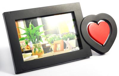 Рамка за снимки с въртящо се сърце - черна. Изработена от PVC материал, фронт стъкло и гръб с поставка за хоризонтално положение. Подходящ подарък за любим човек.