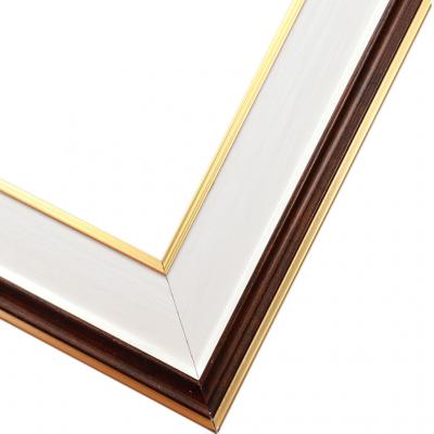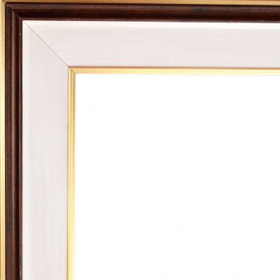 Стилен профил за рамка - бял фладер с линия и гръб с кафяв цвят. Декориран с вътрешен и външен кант - старо злато.