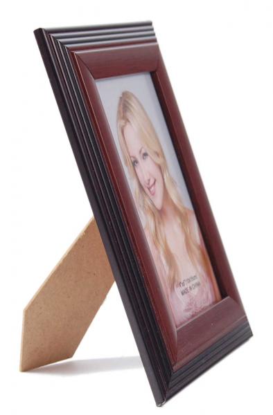Стилна рамка за снимки - стъпаловидна. Рамката има фронт стъкло и гръб с поставка за поставяне хоризонтално и вертикално. Подходяща за снимки с размер: 10х15см.
