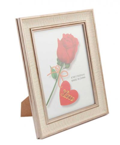 Стилна рамка за снимки със златист вътрешен и външен кант. Рамката има фронт стъкло и гръб с поставка за поставяне хоризонтално и вертикално. Подходяща за снимки с размер: 15х20см. Различни цветове.