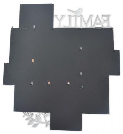 Стилна рамка за 9 снимки с надпис - Family. Цвят: бял на кафеви петна. Подходяща за съхранение на семейни снимки по Ваш избор или като оригинален подарък.