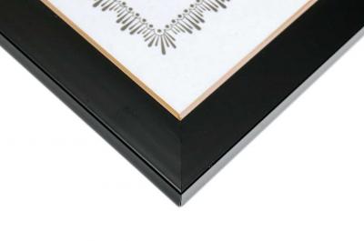 Стилна черна рамка със златист вътрешен кант. Подходяща за грамоти, дипломи и други документи с размери А4. Има кукичка за закачане на стена.