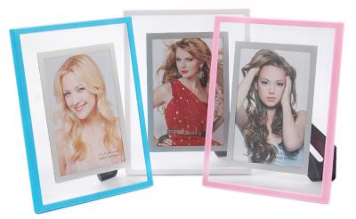 Стъклена рамка за снимки с цветен кант, изработен от PVC материал. Подходяща за снимки с размер 10х15см. Различни цветове.