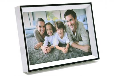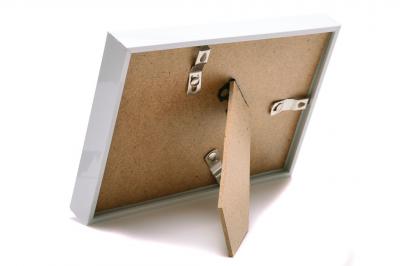 Бяла рамка за снимка с кант, изработена от PVC материал. Рамката е подходяща и за вертикални и за хоризонтални снимки, с краче на гърба, фронт стъкло и с възможност за закачване. Рамката е подходяща за снимка с размери: 10х15 см. Различни цветове.
