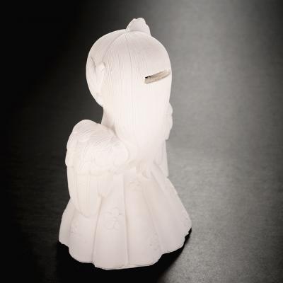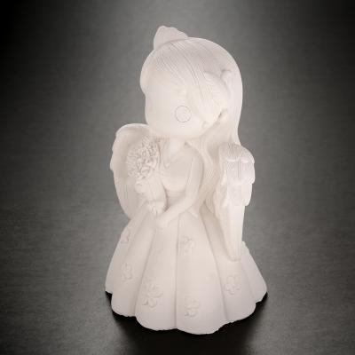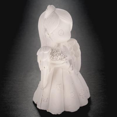 Гипсова фигурка - касичка във формата на ангел с цветя.