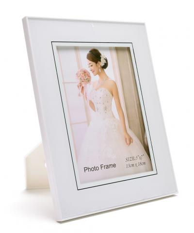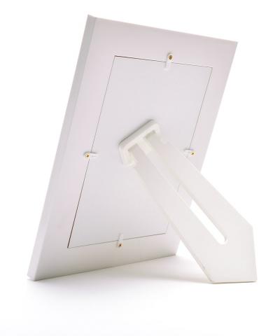 Изчистена бяла рамка за снимка. Рамката е подходяща и за вертикални и за хоризонтални снимки, с фронт стъкло и с краче на гърба. Рамката е подходяща за снимка с размери: 13х18 см.