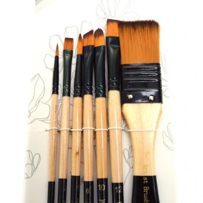 Комплект кръгли и плоски четки за рисуване - 7 бр. Синтетичен косъм. Дължина 18 см.