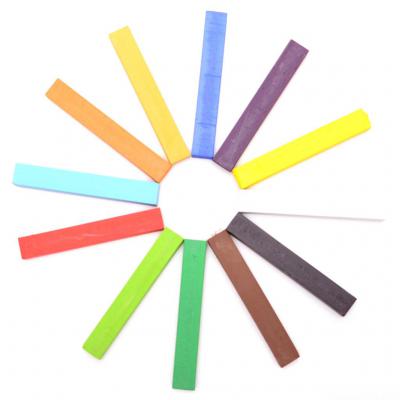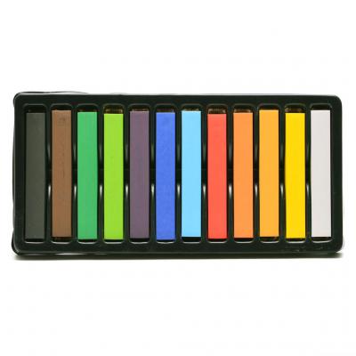 Комплект от 12 броя пастели в различни цветове. Пастелите са с отлична покривност и наситен цвят. Предлагат се в картонена кутия с размери 8.7х18см. Размер на пастел: 1х1х6.5см.
