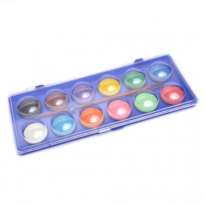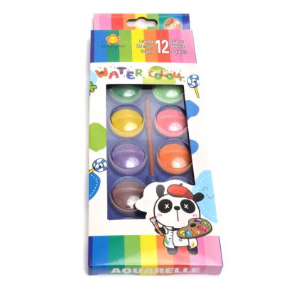 Комплект от 12 цвята водни боички. Боичките са в PVC кутийка с четка за рисуване. Подходящи за най-малките творци.