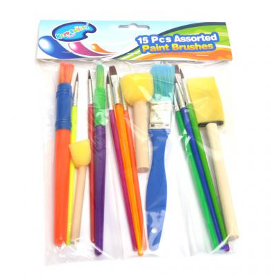 Комплект от 15 броя четки и тампони за рисуване. Четките са кръгли и плоски. Размери на опаковката: 17х24 см.