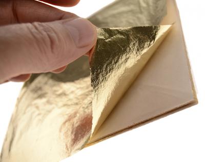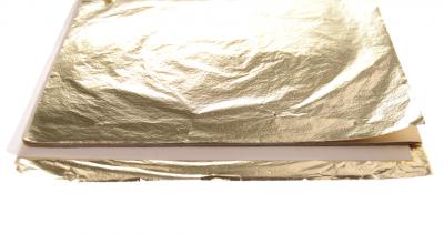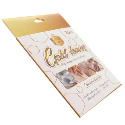 Комплект от 25 броя тънки листчета за декорация - златни. Подходящи са за декорация на всякакви повърхности, на които желаете да създадете метален ефект. Размери на един лист: 14х14 см.