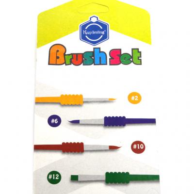 Комплект от 4 броя детски четки за рисуване с мека зона за захват. Четките са кръгли и една плоска. Подходящи за най-малките творци за рисуване с акрилни, водни и маслени бои.