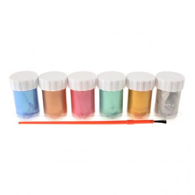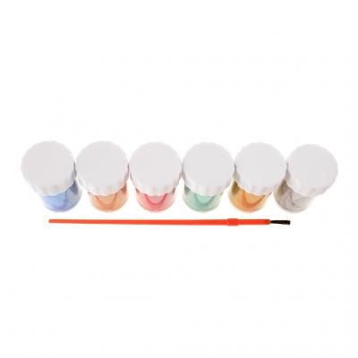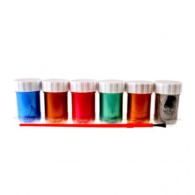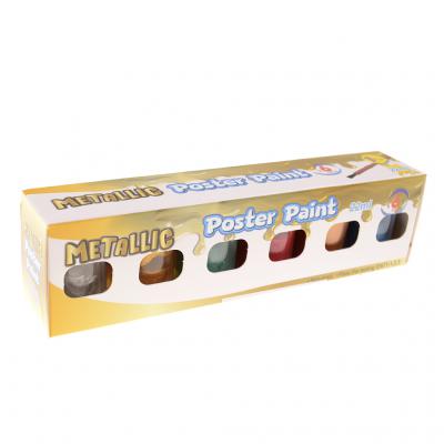 Комплект от 6 броя плакатни бои с метален ефект. Включена е четка за рисуване.