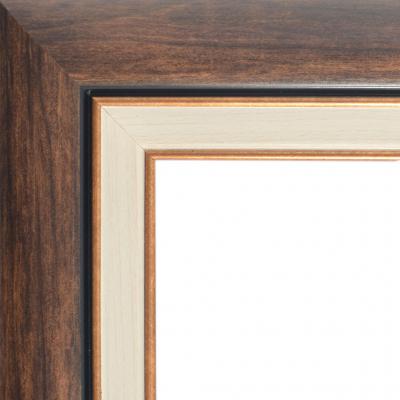 Профил за рамка с паспарту със златисти кантове. Профилът е с лек релеф, създаващ впечатление за дърво - светло кафяво.