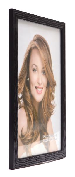 Рамка за снимка, подходяща за вертикални снимки, с фронт стъкло и кукичка за закачване. Рамката е декорирана с релефни вълнообразни линии. Изработена от PVC материал. Рамката е подходяща за снимка с размери: 20х30 см.