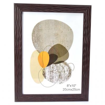 Рамка за снимка, подходяща и за вертикални и за хоризонтални снимки, с фронт стъкло и кукичка за окачване на стена. Рамката е декорирана с вълнообразни линии. Изработена от PVC материал. Рамката е подходяща за снимка с размери: 20х25 см. Предлагат се различни цветове.