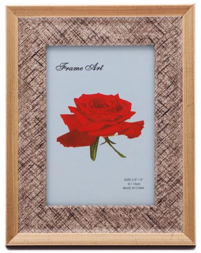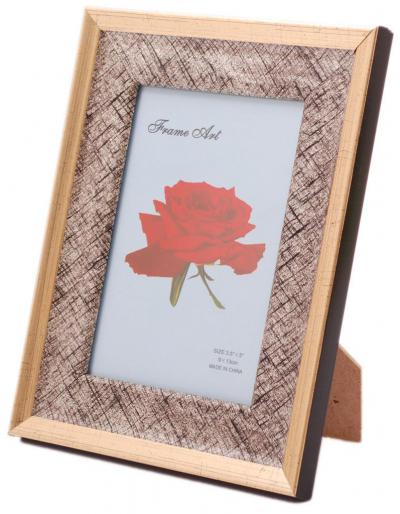 Рамка за снимки, декорирана с външен златист кант. Изработена от фронт стъкло, PVC материал и гръб с поставка. Рамката е подходяща за снимки с размер: 9 х 13 см. Различни цветове.