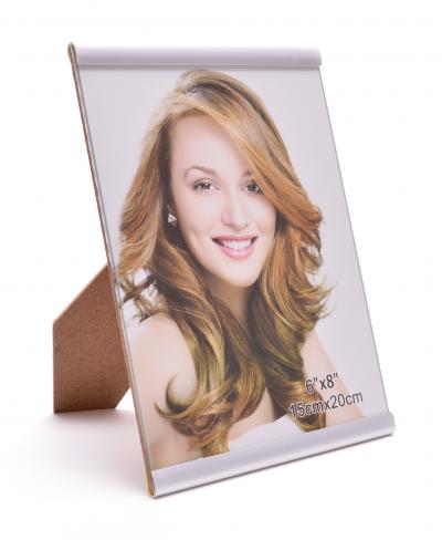 Рамка за снимки със сребристи лайсни. Рамката е подходяща за вертикални снимки, с фронт стъкло и с краче на гърба. Подходяща за снимки с размери: 15х20 см.