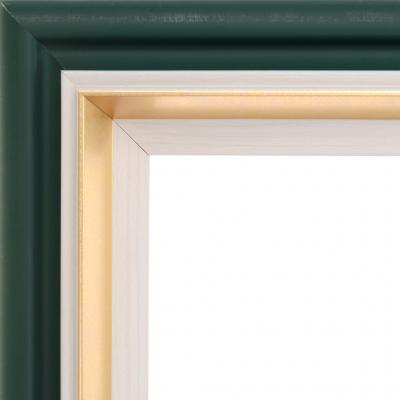 Стилен профил за рамка със сложен релеф. Профилът е комбиниран с цвят бял фладер и злато, а гърбът е тъмнозелен.