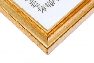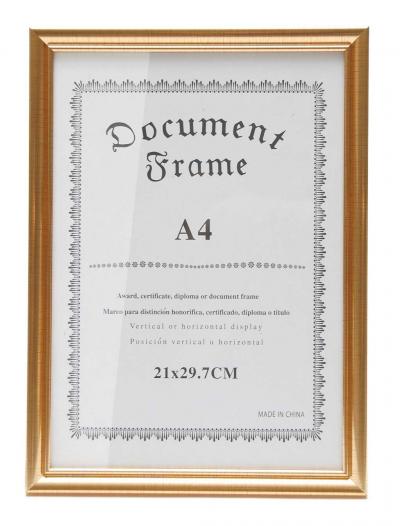 Стилна златиста рамка, подходяща за грамоти, дипломи и други документи с размери А4. Има кукичка за закачане на стена.