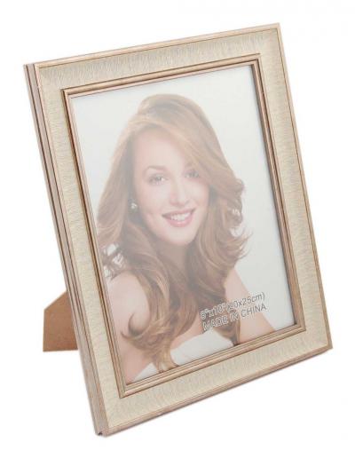 Стилна рамка за снимки със златист вътрешен и външен кант. Рамката има фронт стъкло и гръб с поставка за поставяне хоризонтално и вертикално. Подходяща за снимки с размер: 20х25см. Различни цветове.