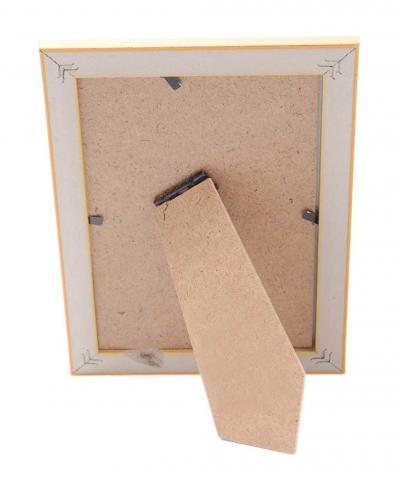 Стилна рамка за снимки със златист вътрешен кант и орнаменти. Рамката има фронт стъкло и гръб с поставка за поставяне хоризонтално и вертикално. Подходяща за снимки с размер: 10х15см. Различни цветове.