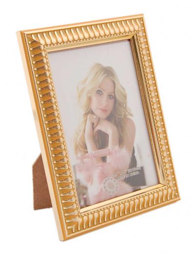 Стилна рамка за снимки със златист вътрешен кант и орнаменти. Рамката има фронт стъкло и гръб с поставка за поставяне хоризонтално и вертикално. Подходяща за снимки с размер: 9х13см. Различни цветове.