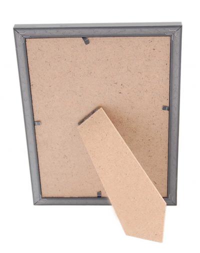 Стилна рамка за снимки с вътрешен кант. Рамката има фронт стъкло и гръб с поставка за поставяне хоризонтално и вертикално. Подходяща за снимки с размер: 13х18см. Различни цветове.