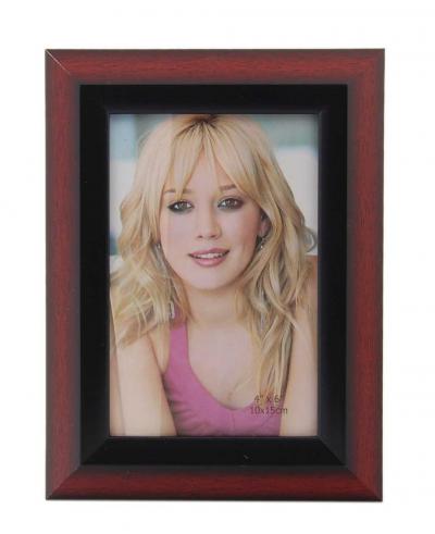 Стилна рамка за снимки с черен вътрешен кант. Рамката има фронт стъкло и гръб с поставка за поставяне хоризонтално и вертикално. Подходяща за снимки с размер: 10х15см. Различни цветове.