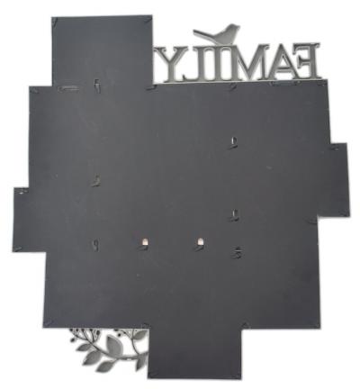 Стилна рамка за 9 снимки с надпис - Family. Цвят: сив. Подходяща за съхранение на семейни снимки по Ваш избор или като оригинален подарък.