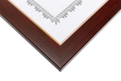 Стилна тъмно вишнава рамка със златист вътрешен кант. Подходяща за грамоти, дипломи и други документи с размери А4. Има кукичка за закачане на стена.