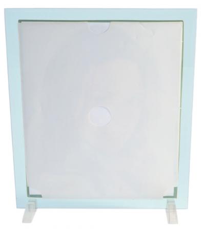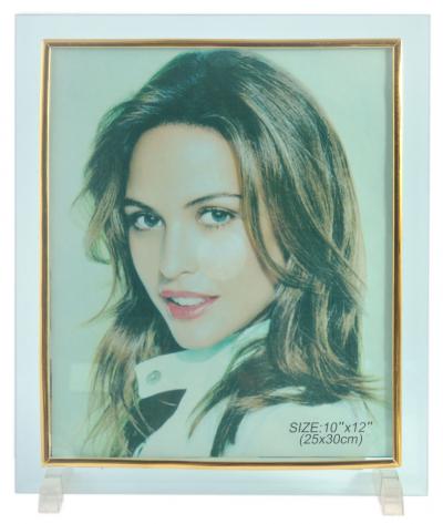 Стъклена рамка за снимки със златист вътрешен кант. Рамката е с две крачета от PVC материал, което позволява тя да бъде поставяна хоризонтално или вертикално. Подходяща за снимки с размери: 25 х 30 см.