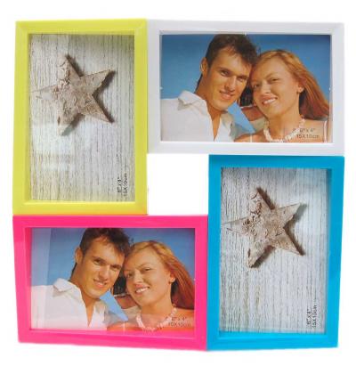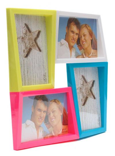Цветна рамка за колекция от 4 снимки с размери: 10х15 см. Размери на рамката: 26.7х26.7см. Мултирамката е с възможност за закачане на стена.