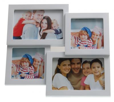 Рамка за четири снимки - две квадратни и две правоъгълни с размери 10х10см и 10х15см - цвят бял.