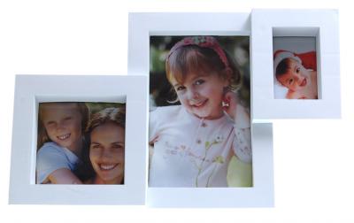 Тройна рамка за снимки с различен размер подходяща за детски снимки или колажчета от типа мама татко и аз. Може да се поставя хоризонтално - няма кукички за окачване на стена.