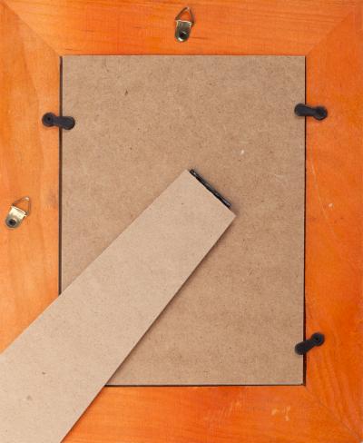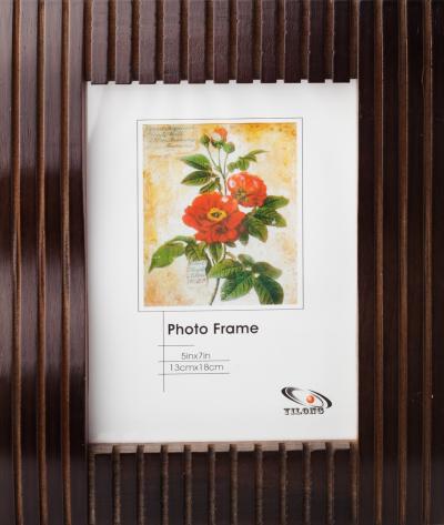 Рамка от набраздено с прорези дърво в тъмно кафяв цвят. Възможност за окачване и поставяне хоризонтално и вертикално.