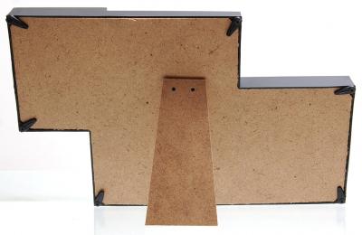 Пластмасова рамка в черен цвят за три снимки. Една 10х10см. една 10х15 см и една 6х8 см.