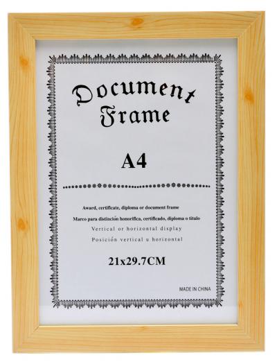 Рамка подходяща за документи, грамоти, снимки с размери А4. Има кукичка за окачване на стена вертикално.