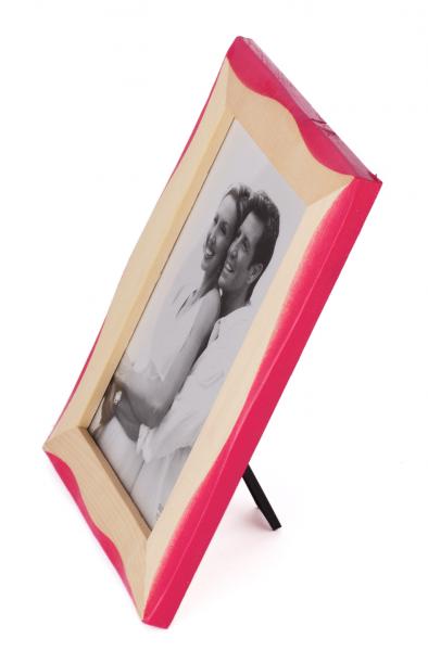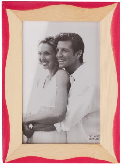 Рамка за снимка от дърво с вълнообразен цветен кант. Рамката е подходяща за вертикални и за хоризонтални снимки, с фронт стъкло и с краче на гърба. Подходяща за снимки с размери: 10х15 см.