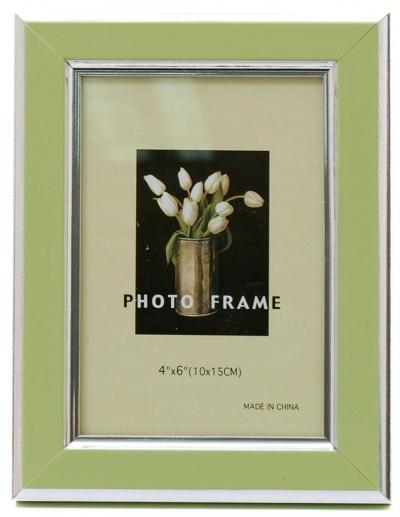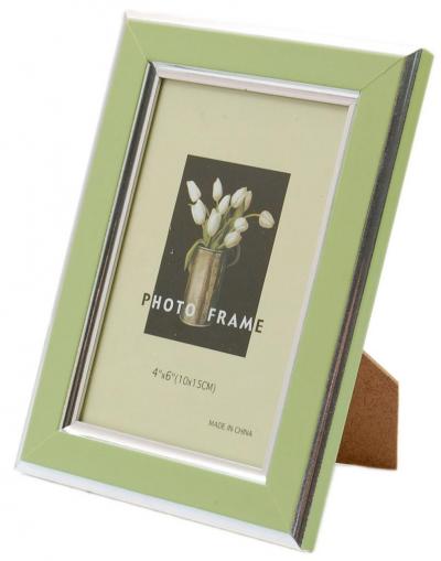 Красива фоторамка за снимки, декорирана с два сребристи канта. Изработена от фронт стъкло, PVC материал и гръб с поставка. Рамката е подходяща за снимка с размер - 10х15см. Различни цветове.