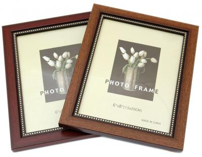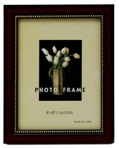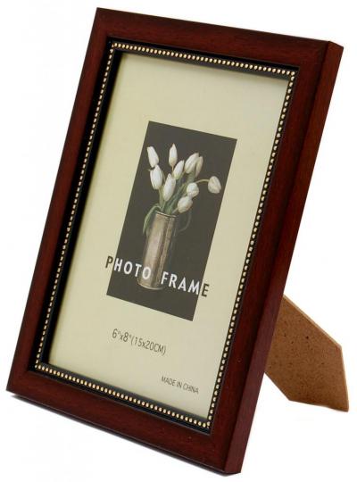 Красива фоторамка за снимки. Изработена от фронт стъкло, PVC материал, създаващ впечатление за дърво и гръб с поставка. Рамката е декорирана със златисти орнаменти. Подходяща за снимка с размер - 15х20см. Различни цветове.