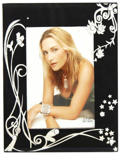 Стъклена рамка за снимка, красиво украсена с флорални мотиви и бели камъни. Рамката е подходяща за снимка с размер - 9х13см